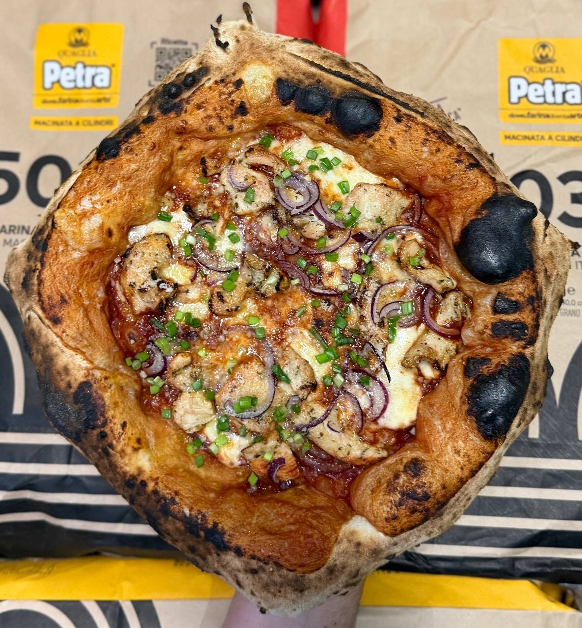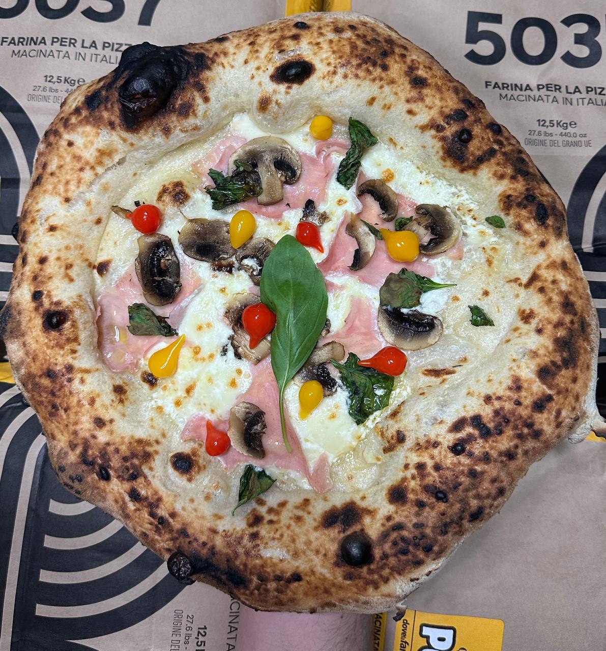 wypiekaną w tradycyjnym piecu opalanym drewnem, z świeżymi, wysokiej jakości składnikami.
